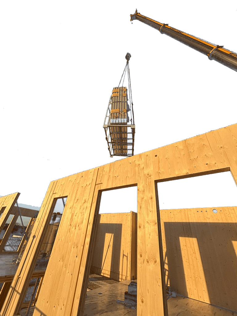 Mit CLT, digitaler Planung und serieller Vorfertigung machen wir hochwertiges Bauen schnell, präzise und bezahlbar – vom ersten Entwurf bis zur schlüsselfertigen Übergabe.